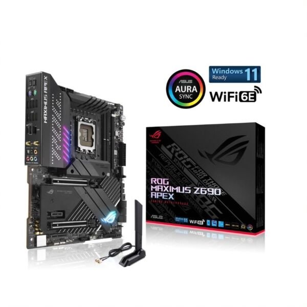 ASUS ROG MAXIMUS Z690 APEX GAMING INTEL LGA1700 ATX MOTHERBOARD WITH 24+0 POWER STAGES, DDR5, FIVE M.2, USB 3.2 GEN 2×2 FRONT-PANEL CONNECTOR WITH QUICK CHARGE 4+ SUPPORT, PCIE 5.0, ONBOARD WI-FI 6E AND AURA SYNC RGB LIGHTING