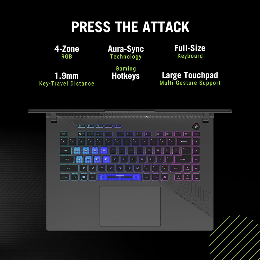 • Display: 40.64 cms (16) 2.5K (2560 x 1600, WQXGA) ROG Nebula Display having 16:10 Aspect Ratio || 3ms Response Time (G2G) || 240Hz Refresh Rate || 500nits Brightness || ROG intelligent cooling