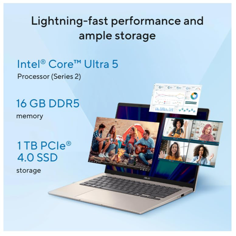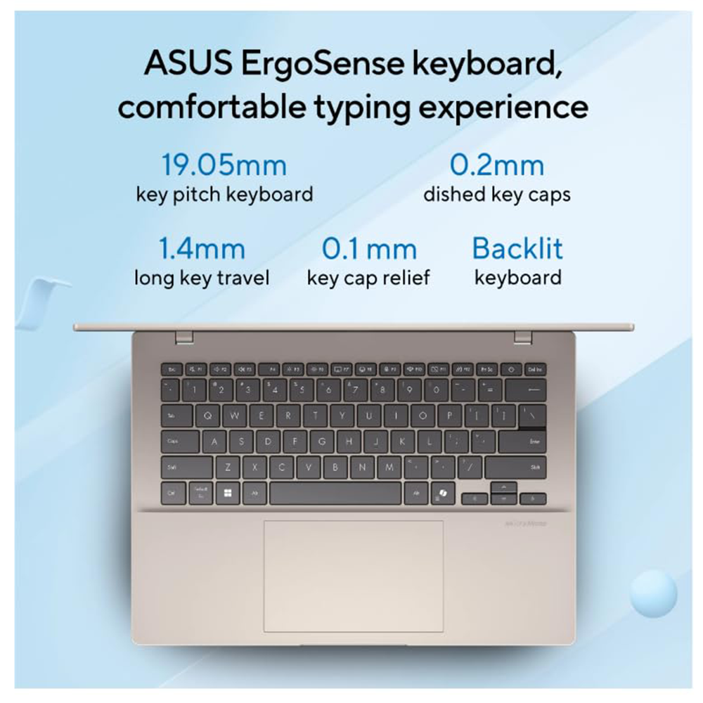 ASUS VIVOBOOK 14 (CORE ULTRA 5 225H/16GB/1TB SSD/W11/MSO24/14″) (X1407CA-LY1581WS) PLATINUM GOLD LAPTOP