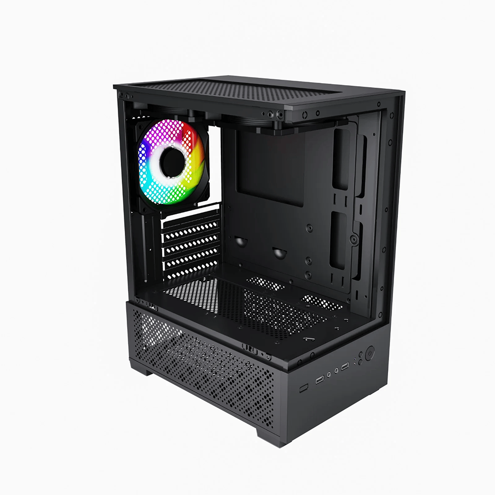 • Premium Atom V300 Gaming Cabinet Design – Stylish mid tower gaming cabinet with dual tempered glass panels for modern RGB PC builds