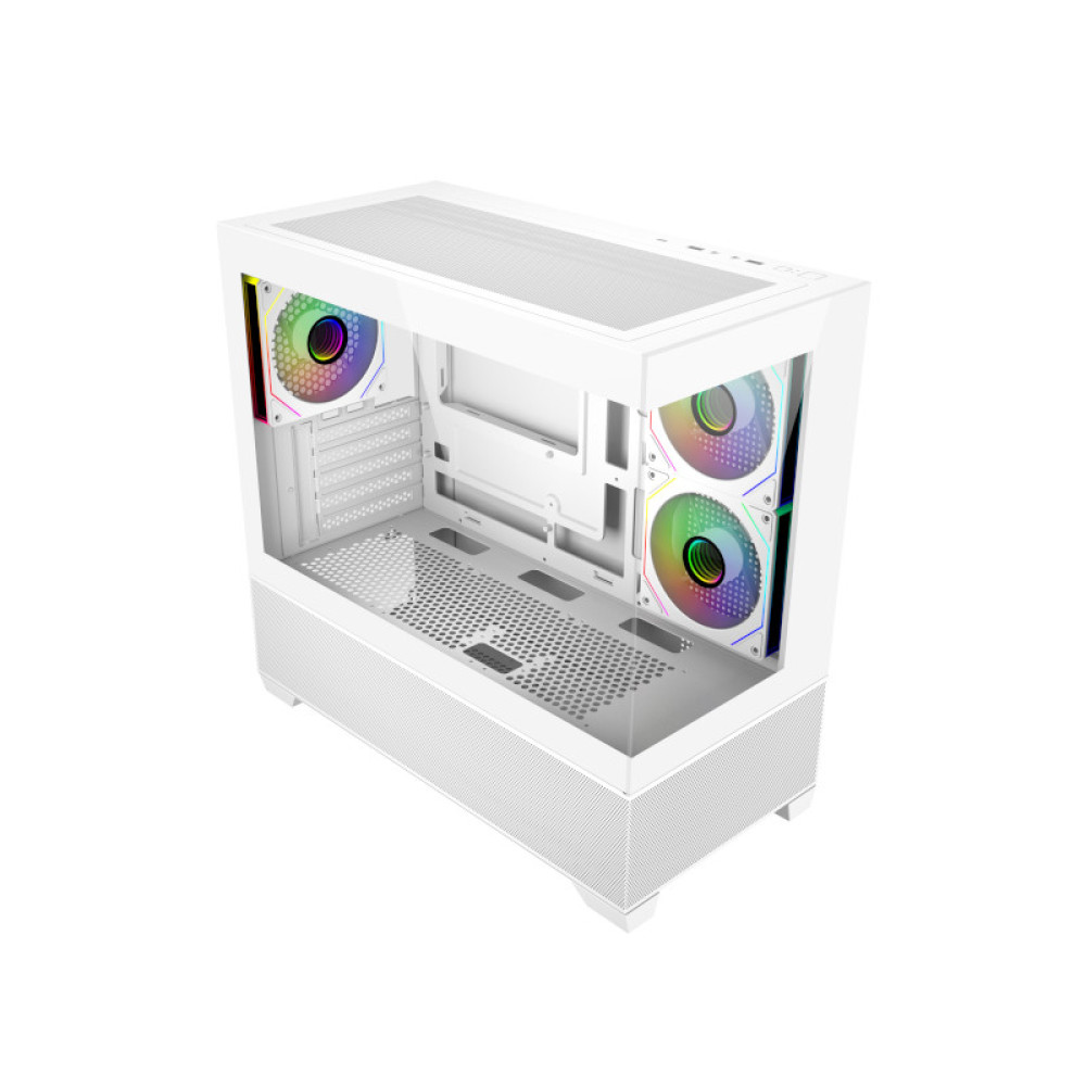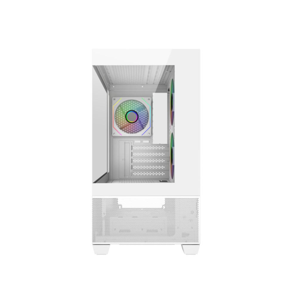 Includes 3 ARGB fans—2 reverse-blade side intake fans and 1 rear exhaust fan. Each fan features daisy-chain connectors for cleaner cable management and streamlined setup, and is fully compatible with major motherboard ARGB software for synchronized lighting control.