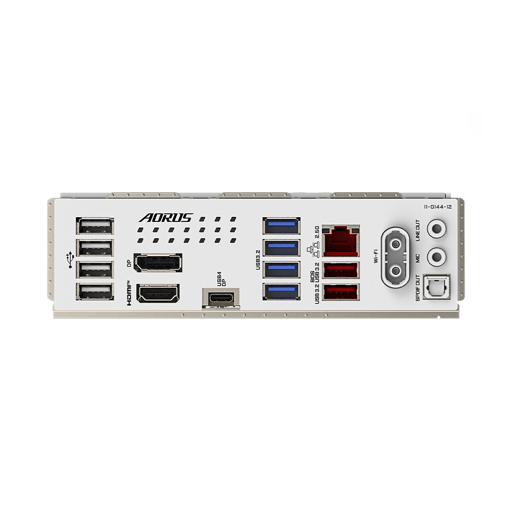 | Back Panel I/O Ports | 1 x USB4 USB Type-C port (DisplayPort (Note)) 2 x USB 3.2 Gen 2 Type-A ports (red) 4 x USB 3.2 Gen 1 ports 4 x USB 2.0/1.1 ports 1 x DisplayPort (Note) 1 x HDMI port (Note) 2 x antenna connectors (2T2R) 1 x RJ-45 port 1 x optical S/PDIF Out connector 2 x audio jacks (Note) Actual support may vary by CPU. |